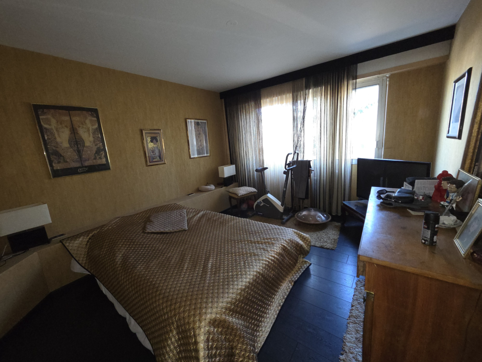 L’appartement se compose actuellement d’un double séjour avec accès balcon, de deux chambres avec possibilité d’aménager une troisième chambre, d’une cuisine indépendante, d’une salle de bains et de WC séparés. Une cave complète le bien.